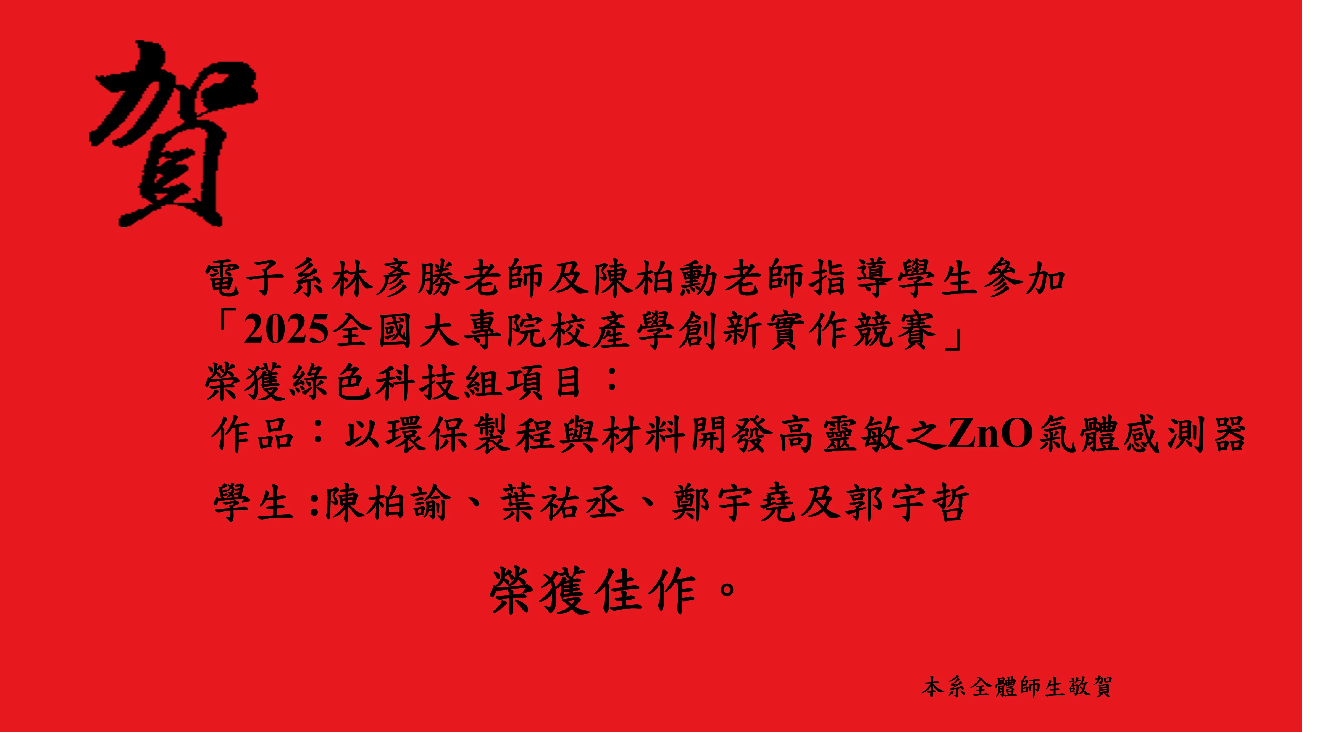 114-1專題製作成果展競賽之成績,請獲獎同學務必115年1月9日前完成期末計畫書上傳!